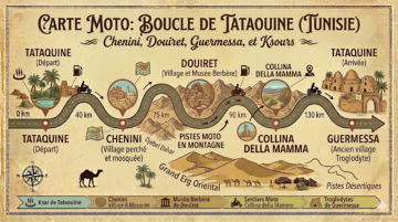 Circuit à moto dans le sud de la Tunisie, visite des monuments et des endroits les plus beaux avec un guide à moto.